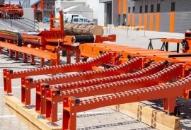 Lože z pily WM4000 mění standardní pilu LT70 na průmyslový stroj. "Ocelová trubka je sama o sobě stejná napříč všemi modely pil Wood-Mizer – od LT20 až k WM4000, ale rozdíl je v konstrukci příčného profilu," vysvětluje Adam. "Zde je spodní část profilu velice pevná s tlustými ocelovými pláty. Tyto sekce jsou stavitelné. Vršek je tvarovaný, dodatečně zesílený a každou sekci lože drží tři šrouby. Tyto šrouby nejsou jen pro zesílení, ale i pro vyrovnání lože. Konstrukce byla navržena pro velice náročný průmyslový provoz a je skoro nemožné ji fyzicky poškodit," ujišťuje Adam Kubiak.