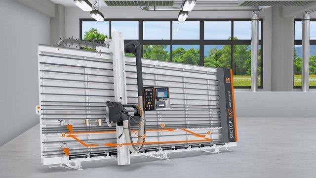 SECTOR 1262 automatic je k dispozícii v širokej škále variantov rámu s dĺžkami rezu od 4300 mm do 6300 mm a výškou rezu 2200 mm. Hĺbka rezu je 80 mm. Špeciálne dĺžky až do 8300 mm sú možné na požiadanie.